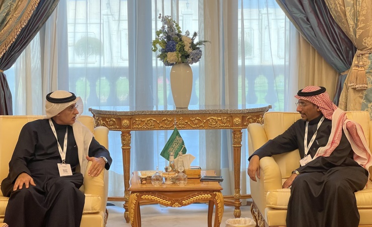Riyadh, Jan. 12 (BNA): Industry, Commerce and Tourism Minister, Zayed bin Rashid Al-Zayani, met here today Saudi Minister of Industry and Mineral Resources, Bandar bin Ibrahim Al-Khorayef, on the sidelines of the ‘Future Minerals Forum’, held under the patronage of the Custodian of the Two Holy Mosques King Salman bin Abdulaziz Al Saud. Al-Zayani highlighted the deep-rooted fraternal relations between the two kingdoms, affirming the government’s support for all programmes, initiatives and projects that would enhance bilateral relations and serve the two brotherly peoples’ interests. He commended the strategic steps led by Saudi Arabia to achieve sustainable development across various economic sectors, including the mining sector, as reflected in its hosting the ‘Future Minerals Forum’. He also highlighted the varied investment projects launched by Saudi investors and businessmen in Bahrain, in addition to the joint Bahraini-Saudi projects, implemented in line with the aspirations of the two kingdoms’ leaderships, confirming the depth of bilateral relations and shared destiny.