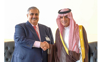 Manama, Sep. 24 (BNA): Minister of Foreign Affairs, Shaikh Khalid bin Ahmed bin Mohammed Al Khalifa, met with the Minister of Foreign Affairs of the Kingdom of Saudi Arabia, Adel bin Ahmed Al-Jubeir, on the sidelines of the 73rd session of the United Nations General Assembly in New York. The two Ministers reviewed the strong brotherly relations between the Kingdom of Bahrain and the Kingdom of Saudi Arabia and affirmed the continuity of joint coordination regarding various issues. Consultations were held regarding the agenda of the 73rd session of the General Assembly meetings.