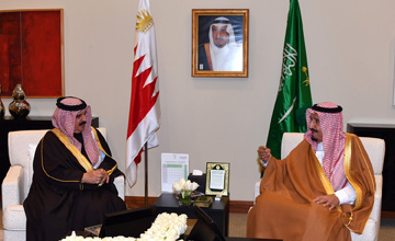 Amman, Mar. 29 (BNA): His Majesty King Hamad bin Isa Al Khalifa today at the King Hussein Bin Talal Convention Centre met with the Custodian of the Two Holy Mosques King Salman bin Abdulaziz Al Saud on the sidelines of the 28th Arab Summit being held in Amman.