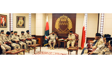 Manama, May 25 (BNA): BDF Commander-in-Chief Field Marshal Shaikh Khalifa bin Ahmed Al Khalifa received today a delegation from the Saudi Armed Forces Command and Staff College led by Colonel Abdulaziz Sa'ad Al Muharab. He lauded strong and distinguished fraternal relations between Bahrain and Saudi Arabia thanks to the leaderships' keenness to further bolster them in various fields. Discussions also focused on issues of common interest. The meeting was attended by General Command Court Acting Director Major General Hassan Mohammed Sa'ad, Inspector General Major General Abdullah Hassan Al Nuaimi, Assistant Chief of Staff for Supply and Logistics Rear Admiral Yussef Ahmed Malallah and senior BDF officers.