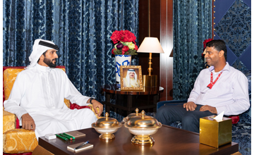 Manama, Sept. 5 (BNA): Representative of His Majesty the King for Charity Work and Youth Affairs, Chairman of the Supreme Council for Youth and Sport and President of Bahrain Olympic Committee Shaikh Nasser bin Hamad Al Khalifa received Bahraini seaman Jafar Ahmed Yusef Mohammed, from Damistan village, who rescued a Bahraini family from drowning in the sea.