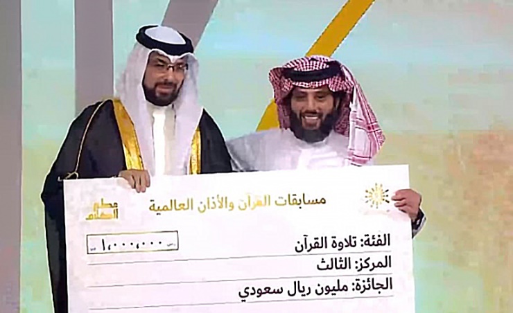 Riyadh, Apr. 21 (BNA): Bahraini Quran reciter Mohammad Mujahid won the prize of SAR1 million ($266,600) for achieving third place in the international competition of the Holy Quran recitation and Call to Prayer Itr Elkalam (Scent of Speech). Moroccan contestant Younes Mustafa Gharbi won the first place in the Holy Quran recitation category, with a prize of SAR5 million ($1,333,300), while British contestant Mohammed Ayoub Asif received SAR2 million ($530,500) for winning second place, Saudi Press Agency (SPA) reported. In the call to prayer category, the two Turkish contestants, Mohsin Kara and Albijan Celik came first and second. Kara won first place and received SAR2 million ($533,200), while Celik won second place and received SAR1 million ($266,600). The third place went to the Saudi contestant Abdul Rahman bin Adel, who received SAR500,000 ($133,300), while the other Saudi contestant, Anas Al Rahili, won the fourth place and received SAR250,000 (66,650). The Chairman of the Board of Directors of the General Entertainment Authority Turki Al Sheikh honored the winners and presented them the valuable prizes allocated to the most beautiful voices in the Holy Quran recitation and the Call to Prayer. The total value of the prizes is SAR12 million ($3.2 million). Al Sheikh announced the continuation of the competition for the next year, with different numbers of contestants from different countries around the world, from which the current competition was attended by skilled participants in reciting the Holy Quran and delivering the call to prayer. The competition is one of the most important ones launched by the General Entertainment Authority during Ramadan, with its content that suits the spirituality of the month, as well as its standards and provisions that enhance competitiveness, through stages and classifications through which qualifying procedures are carried out to ensure that the best-qualified talents reach the final stages. The competition jury consisted of 13 members specialized in judging Quranic competitions. It also includes experts in international Quranic competitions, in addition to imams and muezzins from the Two Holy Mosques and senior world Holy Quran reciters, who enrich viewers with knowledge by evaluating the contestants and offering observations and notes about their performance to benefit viewers and educate them about the sciences of the Holy Quran and ways of reciting it.