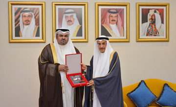 Manama, Feb. 19 (BNA): Deputy Prime Minister Shaikh Khalid bin Abdullah Al Khalifa praised the academic contribution of Bahraini writers to enriching the local and international library with various publications. He was speaking as he received at Gudaibiya Palace today the writers Rashid Sharida, Dr. Ihab Odwan and Dr. Mohammed Al Kooheji who presented him with copies of their books and PhD thesis.