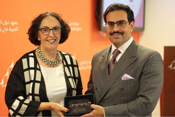 The President of the Arab Gulf States Institute, Marcelle M. Wahba, honoured the ambassador and thanked him for speaking at the discussion and for his continued interest in consolidating relations between the embassy and the institute.