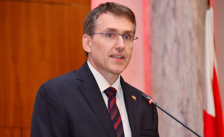 Manama, Nov. 13 (BNA): The German ambassador to Bahrain has praised the kingdom's commitment to religious freedom and tolerance. Ambassador Kai Boeckmann also lauded Bahrain's contribution to fulfill the Sustainable Development Goals and to win the support of young people for these goals. "I am profoundly grateful to HM King Hamad bin Isa Al Khalifa, HRH Prince Khalifa bin Salman Al Khalifa, HRH Prince Salman bin Hamad Al Khalifa and HE Shaikh Khalid bin Ahmed bin Mohammed Al Khalifa who have assured me of their support and the support of the government of the Kingdom of Bahrain for our efforts to deepen and strengthen the excellent relationship between Germany and Bahrain," Boeckmann said at a reception hosted by the embassy to mark German Unity Day. "I congratulate the Kingdom of Bahrain for its election to the UN Human Rights Council." The relationship between Germany and Bahrain is an important element in the effort to overcome divisions, bridge the gap between differing opinions, help resolve crises and conflicts across the globe and promote human rights and the rule of law, the ambassador added. Boeckmann said that Germany wanted to honour the trust of the international community after it was elected by more than 180 countries to the United Nations Security Council as a non-permanent member for two years. "We want to do everything in our power to promote peace and security in the world in cooperation with our partners. This is only possible within a rules-based international order. True multilateralism does not impose the law of the strong but creates fair conditions for everyone," he said. "One lesson from German reunification is that true progress can never take place by going it alone." German Unity Day commemorates the anniversary of German reunification in 1990.