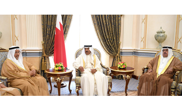 Manama, June 20 (BNA): His Royal Highness Prime Minister Prince Khalifa bin Salman Al Khalifa received today members of the royal family and senior officials and exchanged with them Eid Al Fitr good wishes. He urged to take care of all fundamentals reflecting the community’s history and civilisation and ensure their sustainability. He paid tribute to the Bahraini people for their substantial contribution to Bahrain’s growth, calling to document those roles which have always enlightened the national history.  HRH the Prime Minister underlined the government’s keenness on preserving the kingdom’s heritage for future generations to learn about their history and inherent civilisation in a fast-paced world. He recalled the enormous contribution of late Shaikh Abdullah bin Khalid Al Khalifa to the judicial, Islamic affairs and municipal fields, congratulating Shaikh Abdulrahman bin Mohammed bin Rashid Al Khalifa on his appointment as President of the Supreme Council for Islamic Affairs.  HRH the Premier underscored the importance of taking care of natural resources and wildlife, ensuring their development and sustainability and preserving their diversity as a pillar for sustainable development. He pointed out the kingdom’s unflinching efforts to preserve the environment and natural resources in tandem with its urbanisation projects, calling to give more importance to developing agricultural products and boosting food safety. HRH the Prime Minister underlined the need to preserve the national identity and social texture by reviving the inherent customs and traditions. He said communication has always been an inherent Bahraini approach inherited from the fathers and forefathers. Therefore, he added, "we have to hold on to it so as to preserve the national identity and boost social cohesion." HRH the Premier praised social cohesion in Bahrain, describing it as the catalyst of achievements and development in various fields. He paid tribute to the forefathers for their role and dedication to serving the nation and ensuring its prosperity.
