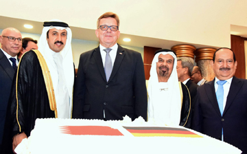 Manama, Oct. 4 (BNA): German Ambassador in Manama Alfred Simms-Protz has praised Bahrain's religious tolerance, human rights progress and constructive role and lauded the wisdom and far-sightedness of the policy of its leaders. "Thanks to the far-sighted policies and wise leadership of His Majesty King Hamad bin Isa Al Khalifa, the Prime Minister His Royal Highness Prince Khalifa bin Salman Al Khalifa and the Crown Prince His Royal Highness Prince Salman bin Hamad Al Khalifa, the Kingdom of Bahrain continues to play a constructive and moderating role, despite having to contend with foreign interference in its internal affairs seeking to destabilize the country," the ambassador said at a reception he hosted to mark the 27th anniversary of German Unity Day, commemorates the anniversary of the German reunification. "Already a model of religious tolerance in the Middle East, it is also making great strides in its human rights development in other areas. I would like to take this opportunity to congratulate the Government of Bahrain on the successful completion of the third cycle of the UPR (Universal Periodic Review) at the HRC this year. Against the background of its liberal lifestyle and openness towards foreigners, it is no coincidence that Bahrain was voted No.: 1 destination for expats worldwide in a survey recently conducted by the network organisation InterNations." The ambassador added that Germany "highly values the contributions Bahrain is making as a member of the Gulf Cooperation Council (GCC), the Arab League, the United Nations and other Arab and international fora." Simms-Protz said that Bahrain-German bilateral relations continue to be cordial and constructive and expressed his country's keen interest in expanding and deepening the political and economic partnership with the kingdom. "Once again, Defence Minister Ursula von der Leyen attended the Manama Dialogue last year and met His Majesty King Hamad as well as with His Royal Highness Crown Prince Salman on this occasion. Two parliamentary delegations visited Bahrain as well in the last year. Germany is keen to expand not only its political but also its economic ties with Bahrain and deepen the existing partnership." The German diplomat added that the German company Armacell was in the process of constructing a greenfield plant for industrial insulation foams in the Bahrain International Investment Park. The park will be operational next year, providing around 100 jobs in its initial phase. "We are also looking forward to the establishment of the Bahrain-German Joint Business Council very soon."