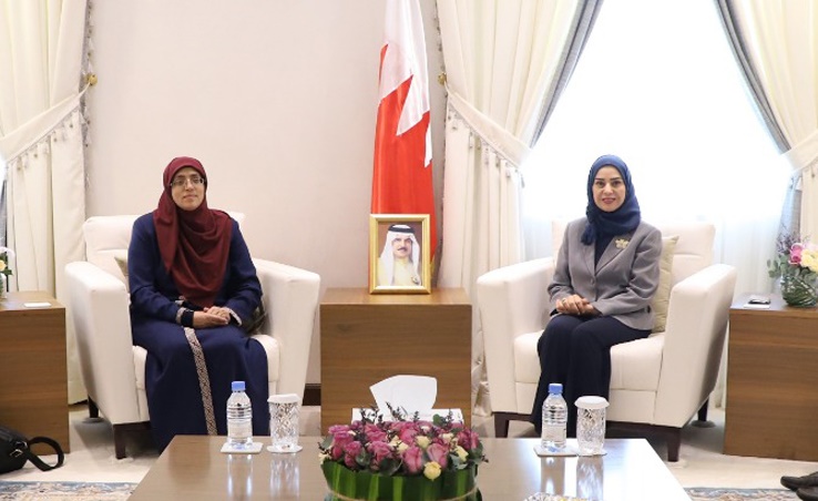 Manama, Apr. 15 (BNA): Representatives Council Speaker Fawzia bint Abdullah Zainal received today visiting Palestinian teachers at Jerusalem schools at Al Aqsa Mosque Khadija Khewis and Hanadi Al Halwani. The meeting was attended by a delegation from Supporting Palestine Association.
