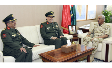 Manama, Mar. 28 (BNA): Chief of Staff of Bahrain Defence Force (BDF) Lieutenant General Dhiab bin Saqr Al Nuaimi received today outgoing Liaison Officer at the Jordanian embassy in Bahrain Brigadier Dr. Awadh Mohammed Al-Tarawna who introduced to him newly-appointed Liaison Officer Brigadier Ibrahim Hamdi Atallah Al Majali.