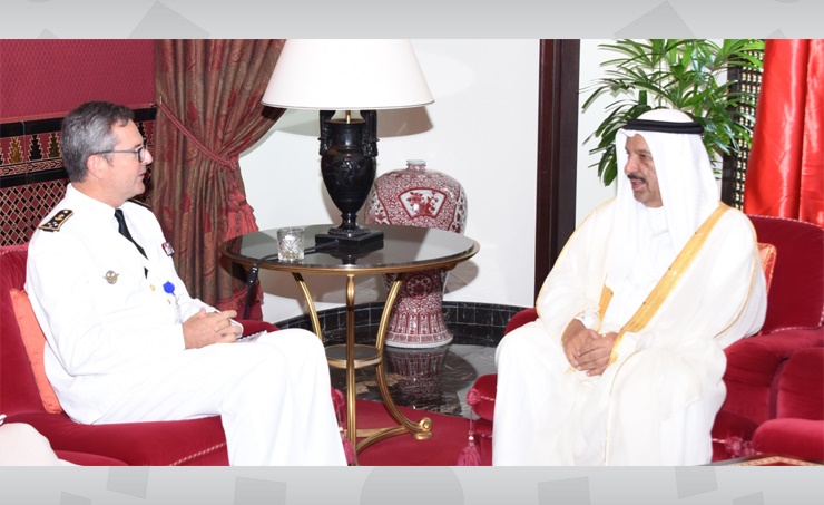Manama, Oct. 27 (BNA): Commander-in-Chief of Bahrain Defence Force (BDF) Field Marshal Shaikh Khalifa bin Ahmed Al Khalifa received Vice Admiral Hervé de Bonnaventure, Deputy Director General for International Relations and Strategy in France on the sideline of his visit to Bahrain and his participation in the Manama Dialogue 2018.