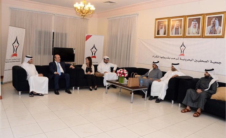 Manama, (BNA): The new Bahrain Journalists’ Association (BJA) board members received the Palestinian Ambassador Taha Mohammed Abdel Qader at its headquarters in Juffair. The Palestinian envoy congratulated the new BJA board members on their election, stressing the role of the press in society and impact on the public opinion in expressing people’s views and shaping social awareness.