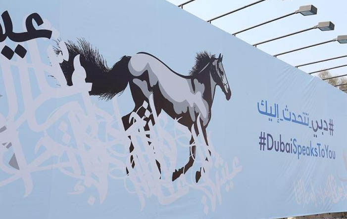 Dubai (WAM): Brand Dubai, an initiative launched by the Government of Dubai Media Office, in collaboration with Dubai’s Road and Transport Authority (RTA) and a host of young artists, has created a giant mural covering the hoardings of the construction site of Union House in Jumeirah Road. The initiative comes in line with the directives of Vice President, Prime Minister and Ruler of Dubai His Highness Sheikh Mohammed bin Rashid Al Maktoum to turn Dubai into an open air gallery, highlighting the unique character of the city as one of the world’s most fastest-growing and culturally diverse cities and emphasising the creative aspect of Dubai’s achievements in all fields. At a six meter height and over 300 meters width, the project is part of "Dubai Speaks to You" and the product of a sincere cooperation between Brand Dubai and RTA to implements ideas and initiatives that shall enrich Dubai’s artistic landscape and features. The mural painting offers a panoramic view, reflecting the monumental role played by the building that marks the birthplace of the United Arab Emirates 43 years ago. The giant wall painting has in its middle the famous photograph of late Sheikh Zayed bin Sultan Al Nahyan, late Sheikh Rashid bin Saeed Al Maktoum and the rulers of the Emirates, taken when the agreement to form the U.A.E. was signed. Moreover, the colours of the U.A.E. flag, green, white, red and blue, influenced the colours chosen for the mural. The mural also includes a painting of the U.A.E. flag where the first verses of the National Anthem are written in Arabic calligraphy to emphasise the Arabic cultural identity. Other cultural Emirati elements such as "horses" and "falcons" were included in the mural, preserving aspects of Bedouin cultural heritage and emphasising the fact that art has a significant message that goes far beyond its role of beautification. Mona Al Marri, Director General of the Government of Dubai Media Office, said: "this move responds to the directives of His Highness Sheikh Mohammed bin Rashid Al Maktoum who assured during his meeting with U.A.E.’s talented artists while launching the "Dubai Speaks to You" project that the United Arab Emirates fosters best talents in the region, calling on them to contribute in turning Dubai into an open air gallery. Al Marri added: "Dubai Speaks to You" aims to launch a pack of distinguished initiatives that highlight the unique characters of Dubai as a vast growing and culturally diversified city. Mona Al Marri explained that "Dubai Speaks to You" supports Dubai’s message to the world and introduces Dubai as a multicultural city with expatriates from around the world. These communities contribute to making Dubai a rich cultural mosaic. About "Dubai Speaks to You" future projects of, Al Marri assured that the upcoming phase will witness inauguration of several projects in collaboration with major developers and talented artists. Brand Dubai has agreed with real-estate developers on many projects and ideas, and the standards to manage and implement these projects had been approved. – Emirates News Agency, WAM – http://www.wam.ae/en/news/emirates/1395269289527.html