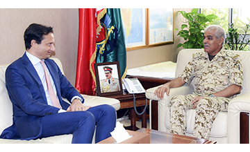 Manama, July 11 (BNA): Chief of Staff of the Bahrain Defence Force (BDF), Lieutenant-General Diyab bin Saqr Al-Nuaimi, received here today the Italian Ambassador to Bahrain, Domenico Bellato.