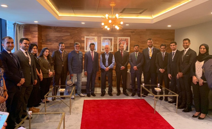 New York, Sept. 17(BNA): Cabinet Minister Mohammed bin Ibrahim Al-Mutawa met Bahrain Permanent Representative to the United Nations and Mission members in New York Jamal Al-Ruwae. The meeting was attended by Shaikh Hosam bin Isa Al-Khalifa, president of the award of His Royal Highness Prime Minister Prince Khalifa bin Salman Al-Khalifa for Sustainable Development. The minister conveyed greetings from HRH the Premier to the mission president and member hailing their efforts in representing the Kingdom of Bahrain and expressing its stances and visions regarding international issues. He commended preparations for the second edition of the forum "Bahrain’s Share Visions for Successful Future", which will be held on September 26, on the sidelines of the UN General Assembly session (UNGA), under the theme "Required Values to achieve Sustainable Development Goals". He praised the efforts of the mission to promote HRH the Premier’s initiative, which paid off, resulting in the UN proclamation of the April 5 as the International Day of Conscience. The minister met the delegation which was sent by the Foreign Ministry to attend the 74th UNGA session, stressing the importance of the initiative which would enable the young diplomats to hone their skills and represent the Kingdom of Bahrain in international arenas successfully.