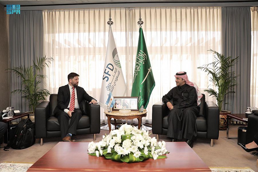 Riyadh, February 23, 2022, SPA -- CEO of the Saudi Fund for Development (SFD) Sultan bin Abdulrahman Al-Marshad received here today National Director of Projects with Bilateral External Financing of Argentina Matias Mana.