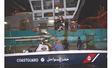Manama, July 17 (BNA): Coast Guard Commander, Major-General Alaa Siyadi announced today that the Coast Guard vessels assisted and provided the required support to a marine excavator with nine crews on board after encountering a water leakage because of a technical fault in the pumps. He said that no injuries were reported.