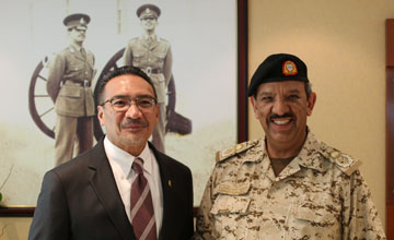 Manama, Apr. 3 (BNA): Commander-in-Chief of the Bahrain Defence Force (BDF), Field Marshal Shaikh Khalifa bin Ahmed Al Khalifa, today hosted a luncheon in honour of the Malaysian Defence Minister, Hishammuddin Hussein, who is currently on a visit to the Kingdom.