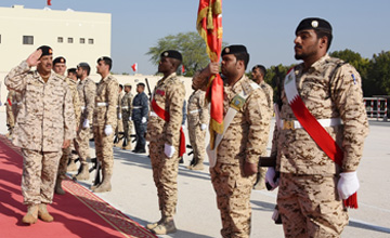 Manama, Mar. 9 (BNA): Commander-in-Chief of Bahrain Defence Force (BDF) Field Marshal Shaikh Khalifa bin Ahmed Al Khalifa patronized today a graduation ceremony of an advanced mobilization session for officers at the Royal Defence Force Training Centre. He was welcomed on arrival by Defence Minister Lieutenant General Yusef bin Ahmed Al Jalahma, Chief of Staff Lieutenant General Dhiab bin Saqr Al Nuaimi, Defence Ministry Undersecretary Major General Shaikh Ahmed bin Mohammed Al Khalifa and senior officers.