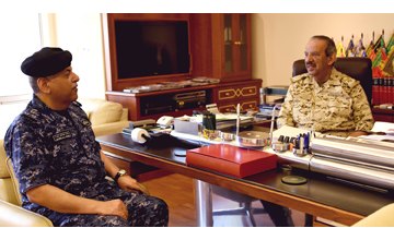 Manama, Apr. 18 (BNA): BDF Commander-in-Chief Field Marshal Shaikh Khalifa bin Ahmed Al Khalifa received Commodore Jassim Abdullah Al Jowder on the occasion of his appointment as a new military attaché at the Embassy of Bahrain to the United States, wishing him success in his diplomatic duties in the interest of Bahrain.