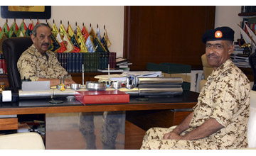 Manama, Apr. 30 (BNA): Commander-in-Chief of Bahrain Defence Force (BDF) Field Marshal Shaikh Khalifa bin Ahmed Al Khalifa received today the BDF task force that took part in the Joint Gulf Shield 1 drill. He welcomed the task force's Commander, lauding the success made in the military exercise and the high competence shown in attaining the goals assigned with them.