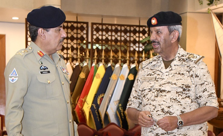 Manama, Nov. 22 (BNA): Commander-in-Chief of the Bahrain Defence Force (BDF), Field Marshal Shaikh Khalifa bin Ahmed Al Khalifa, received at the BDF General Command today, the Chairman of the Joint Chiefs of Staff Committee of the Armed Forces of the Islamic Republic of Pakistan, General Nadeem Raza, and his accompanying delegation. Chief of Staff, Lieutenant-General Dhiyab bin Saqr Al-Nuaimi, was present. The BDF chief welcomed General Nadeem Raza and his accompanying delegation, stressing the depth of the distinguished friendship relations between the two countries. The two sides reviewed ways to enhance bilateral relations at all levels, especially regarding military coordination and defence cooperation.