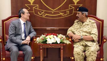 Manama, May 15 (BNA): Commander-in-Chief of Bahrain Defense Force (BDF), Field Marshal Shaikh Khalifa bin Ahmed Al Khalifa received newly-appointed Chinese Ambassador to Bahrain An Wa'er.