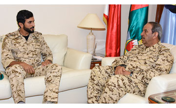 Manama, Mar. 16 (BNA): Commander-in-Chief of the Bahrain Defence Force (BDF), Field Marshal Shaikh Khalifa bin Ahmed Al Khalifa, received today Royal Guard Commander Brigadier-General, Shaikh Nasser bin Hamad Al Khalifa.