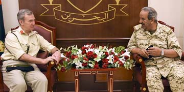 Manama, June 21 (BNA): Commander in Chief of the Bahrain Defence Force (BDF) Field Marshal Shaikh Khalifa bin Ahmed Al Khalifa received at the BDF General Command today the outgoing Chief of the Defence Staff of the British Armed Forces General Sir Nicholas Houghton and his accompanying delegation.