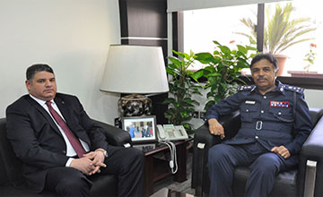 Manama, May 16 (BNA): Interior Minister Assistant Undersecretary for Ports, Search and Follow Up at the Nationality, Passports and Residence Affairs, Brigadier Abdulrahman Saleh Al Sinan today received Director of the Interpol Counter terrorism project in the Middle East and North Africa (MENA) Hossam Abdullatif. The two sides discussed key issues if of common interest and means to promote cooperation and coordination. The meeting also focused on Interpol training programmes which may benefit Passports officers to enable them to keep abreast on international standards on combating crime and honing their security skills.