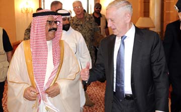 Manama, Mar. 15 (BNA): Defence Minister Lieutenant General Yusef bin Ahmed Al Jalahma bid farewell at Bahrain International Airport today to his US counterpart James Mattis after concluding a visit to Bahrain.