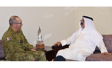 Manama, July 29 (BNA): Defence Affairs Minister Lt-General Yousef bin Ahmed Al Jalahma today received the Commander of Australian Combined Operations Forces Air Marshal Mell Hupfeld accompanied with Vice Admiral Jimmy Hatcher, Commander of the Combined Task Force (CTF633).