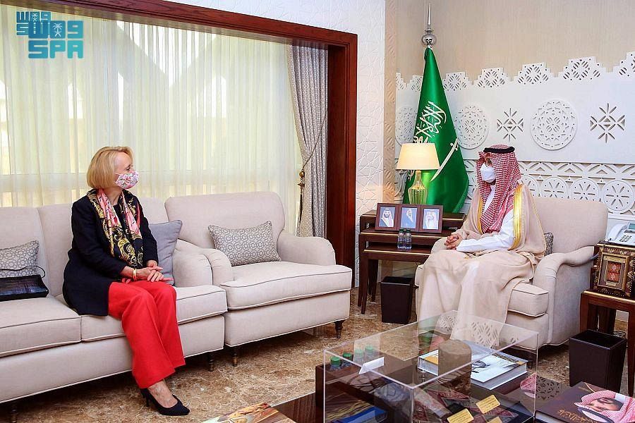 Dammam, April 11, 2021, SPA -- Prince Ahmed bin Fahd bin Salman bin Abdulaziz, Deputy Governor of Eastern Region, received at his office here today the Chargé d'Affairs of United States of America Embassy in the Kingdom of Saudi Arabia Martina Strong and her accompanying delegation.