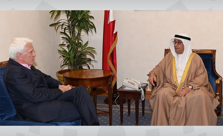 Manama, Oct. 4 (BNA): His Highness Shaikh Mohammed bin Mubarak Al Khalifa, Deputy Prime Minister and Chairman of the Board of Trustees of The Isa Award for Service to Humanity received Professor Ian Bolson the chief of the Award’s arbitration panel.