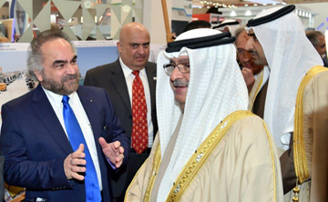 Oil Minister Shaikh Mohammed bin Khalifa Al Khalifa accompanied HH Shaikh Ali. Both were received by GPIC President Dr. Abdulrahman Jawahery and members of the Executive Management, who also took them around the pavilion and briefed them on GPIC’s production process, its high quality products and exports to global markets.
