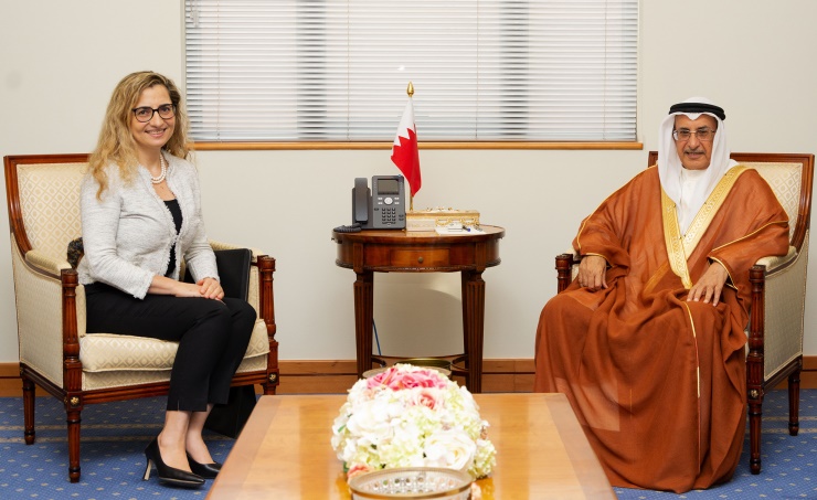 Manama, Aug. 23 (BNA): Deputy Prime Minister and Infrastructure Minister Shaikh Khalid bin Abdullah Al Khalifa receives Italian Ambassador to Bahrain, Paola Amadi. The deputy prime minister praised the distinguished bilateral relations. He stressed the keenness to enhance cooperation on the economic level. The meeting reviewed trade exchange between the two countries, which amounts to about $400 million, especially in importing and exporting aluminum and food, and promoting tourism activities. The two parties hailed the role of Bahraini-Italian Business Council. The ambassador expressed her appreciation to the deputy prime minister for his interest and stressed her country’s aspiration to strengthen trade and economic cooperation by encouraging expertise and creating promising opportunities for investment.