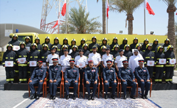 Manama, Aug. 2 (BNA): On behalf of the Chief of Public Security, Major-General Tariq Al Hassan, the Deputy Chief of Public Security, Major-General Abdullah Al Zayed attended a graduation ceremony of a firefighting orientation course of the General Directorate of Civil Defence for new police personnel and firefighters from Banagas, in addition to a training of trainers course. The Deputy Chief hailed the skills of the graduates, stressing that the round-the-clock duties of the civil defence personnel require full commitment, competency and swift response.