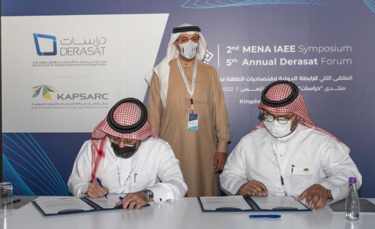 Manama, Mar. 3 (BNA): A memorandum of understanding was signed today by Bahrain Centre for Strategic, International and Energy Studies (Derasat) and the King Abdullah Petroleum Studies and Research Centre (KAPSARC), in the presence of Derasat Board of Trustees Chairman, Dr. Shaikh Abdullah bin Ahmed Al Khalifa.