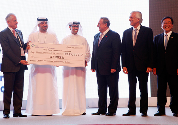 During its participation in the Congress, organised by International Chambers of Commerce's World Chambers Federation (WCF) from April 22 to 25 at the Qatar National Convention Centre, Dubai Chamber won the award for demonstrating a positive impact on the environment, through its initiatives of green building, the University of Dubai, the establishment of the Centre for Responsible Business and the Mohammed bin Rashid Al Maktoum Business Award Program thus covering excellence in various areas of economic and social importance.