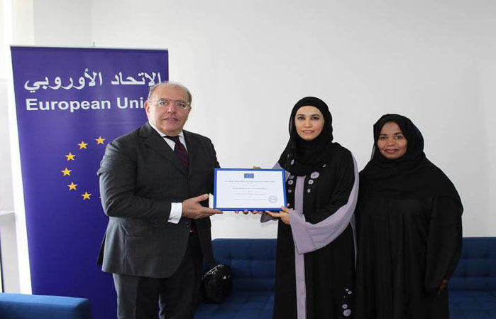 The award was received by Shaikha Saeed Al Mansoori, Assistant Director-General for Corporate Support at DFWAC, on behalf of Afra Al Basti, DFWAC Chief Executive Officer, at a ceremony at the EU Delegation to the UAE headquarters in Abu Dhabi.