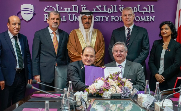 Manama, Mar. 26 (BNA): The University of Bahrain has celebrated the launch of cooperation with the International Platform for Digital Skills Development "IDEA", which is under the initiatives of HRH Prince Andrew, Duke of York, aimed at encouraging the youth learning and entrepreneurship. HRH Prince Andrew honoured 37 students from the English Language Center at the University of Bahrain, who won the bronze badge through their participation in the IDEA competition. Minister of Education, Chairman of Board of Trustees of the University of Bahrain, Dr. Majid bin Ali Al Nuaimi, praised the university's cooperation with the International Platform for Digital Skills Development, one of the most important initiatives of HRH Prince Andrew in the field of field of digital education, which offers the students the opportunity to develop their skills in projects innovation and entrepreneurship, consequently promoting their chances in labour market. The minister highlighted Bahrain’s keenness to benefit from international initiatives to boost educational services in the higher education field. He noted the progressing friendship relations and cooperation between Bahrain and the United Kingdom in various areas. President of the University of Bahrain, Dr. Yusuf Hamza, welcomed the role of HRH Prince Andrew in encouraging the youth learning and entrepreneurship. He said the Platform programme is available to students to improve their aptitudes in solving problems and innovation thinking. HRH Prince Andrew and Chancellor of British University of Huddersfield toured the Royal University for Women in the presence of Education Minister and officials. A letter of intent between the two universities was singed to promote cooperation.