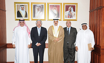 Manama, June 19 (BNA): Education Minister Dr. Majid bin Ali Al Nuaimi, the University of Bahrain (UoB) Board of Trustees Chairman, received UoB President Dr. Riyadh Yusef Hamza and officials. He congratulated them on the university’s reception of the international academic accreditation in many programmes by well-reputed international institutions. He stressed that the honourable achievements brought about by UoB reflect its high international standing, reiterating pledge of the Board of Trustees, thanks to the leadership’s support, to further optimise educational services provided for the students. The meeting was attended by UoB Vice President for academic programmes and higher studies Dr. Wahib Isa Al Nasser, Dean of the Business Management College Dr. Mnawar Al Shammari and Dean of the Science College Dr. Hesham Al Sayed.