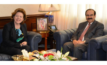 Manama, Jan. 29 (BNA): Electricity and Water Affairs Minister Dr. Abdulhussain Mirza received Eithne Treanor, the Chief Executive Officer of Dubai-based economic media consultancy, Treanor.