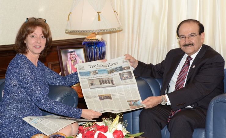 Ms. Martin is currently in Bahrain to prepare a special economic report on the kingdom in cooperation with The Japan Times. During the meeting, the minister welcomed Ms. Martin and reviewed the details of the next issue of the foundation's report.
