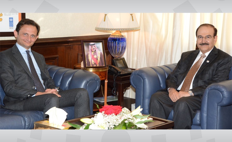 Manama, May 5 (BNA): Electricity and Water Affairs Minister Dr. Abdulhussein Mirza received Italian Ambassador, Domenico Pilato, and praised the strong relations between the two friendly countries in the fields of electricity, water and renewable energy.