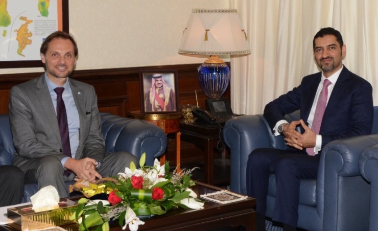 Manama, Oct. 15 (BNA): Electricity and Water Affairs Minister, Wael bin Nasser Al Mubarak, received United Nations Development Programme (UNDP) Resident Representative, Stefano Pittinato. Officials from the Sustainable Energy Centre were present at the meeting, which discussed the results of the implementation of the national plan for renewable energy, the directives of His Majesty King Hamad bin Isa Al Khalifa, His Royal Highness Prime Minister Prince Khalifa bin Salman Al Khalifa and His Royal Highness Prince Salman bin Hamad Al Khalifa, the Crown Prince, Deputy Supreme Commander and First Deputy Prime Minister, which aim to diversify energy sources and conserve natural resources by activating the uses of renewable alternative energy and improving energy efficiency. The minister said there are several indicators that are beginning to bear fruit by attracting ideas and proposals for new projects in renewable energy. He said this indicates that Bahrain is on track to achieve national targets and the rates approved by the Cabinet to reach 5 per cent of renewable energy use by 2025. He said these ideas, proposals and projects give a strong impetus to Bahrain†s economy towards further development and prosperity. The minister praised the continued support and follow-up by the UNDP for all steps it had taken. He said it plays an important role through its membership in the national committee to follow up the implementation of the plans. The programme also employs specialized expertise in the fields of energy efficiency and renewable energy to achieve the desired goals and objectives in this area. The Sustainable Energy Centre was established in 2014 in partnership with the Ministry of Electricity and Water Affairs and the UNDP to promote clean and environmentally friendly uses of energy in Bahrain and to achieve United Nations goals related to securing durable and green energy for everyone.