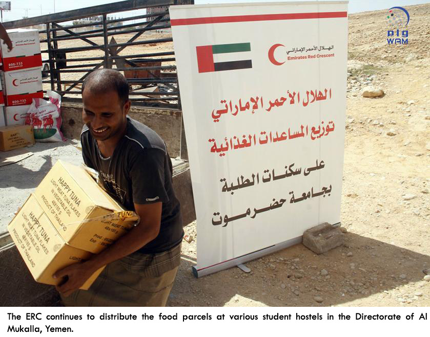 AL MUKALLA, 3rd November, 2016 (WAM) -- As part of the UAE’s drive to help the people of Yemen, Emirates Red Crescent, ERC, continues to distribute food to the students of the University of Hadramaut in Falak district of Al Mukalla Directorate.