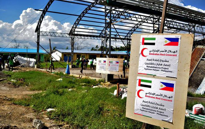 ABU DHABI, 2nd March, 2015 (WAM) -- An Emirates Red Crescent, ERC, delegation, headed by Dr. Hamdan Musallam Al Mazrouei, Chairman of the ERC, will travel to the Philippines capital city Manila tomorrow, to inaugurate a number of projects and vital facilities in health and education sectors. The project comes within three agreements signed by the authority with the Philippines government to assess the damage caused by typhoon Haiyan in two provinces of the Philippines last year. Secretary-General of the ERC, Mohammed Ateeq Al Falahi, said that the agreements come within the authority's efforts to follow up the typhoon victims situation and to observe the results of the efforts made by several delegations relief conducted visits to the Philippines after the occurrence of Haiyan, in coordination with local authorities and in cooperation with the UAE Embassy in Manila. Al Falahi added that the ERC delegation will sign a number of agreements in coordination with the Philippines Red Cross to implement the second phase of the relief programme which comes in implementation of directives of President His Highness Sheikh Khalifa bin Zayed Al Nahyan, for humanitarian aid worth ten million dollars for the relief of Haiyan victims as well as rebuilding affected hospitals and schools. – Emirates News Agency, WAM – http://www.wam.ae/en/news/emirates/1395277280761.html