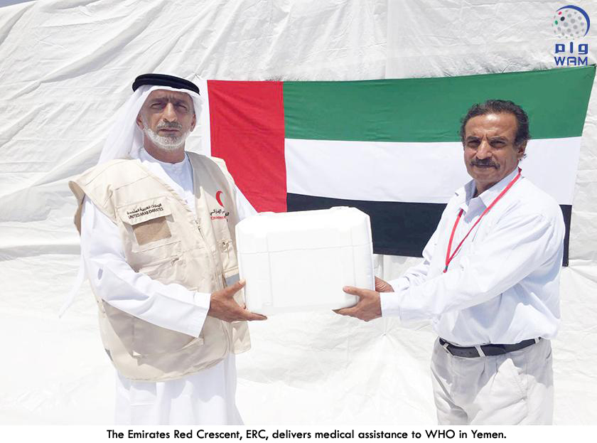ADEN, 20th October, 2016 (WAM)-- Emirates Red Crescent (ERC) has moved quickly to save lives in Yemen by delivering oral rehydration solution (ORS), which is used to treat diarrhoea, as well as cholera. The ERC delivered the rehydration solution to the coordinator of the World Health Organisation (WHO) in Yemen, Dr. Mohammed Cleese. The move is part of the UAE efforts to improve the performance of vital sectors, including the medical sector. Cleese praised the UAE's speedy response, in providing rehydration solutions to the Yemeni people. He also thanked the UAE leadership and people on their continued efforts to prevent the spread of disease. – Emirates News Agency, WAM - http://www.wam.ae/en/news/emirates-international/1395301488232.html