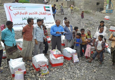 TAIZ, YEMEN, 17th May, 2016 (WAM) -- The Emirates Red Crescent, ERC, has distributed 2,000 relief and food parcels in the Al-Shamaytayn district of Taiz governorate in Yemen. The Emirate Red Crescent support comes within the framework of its relief aid and humanitarian projects in Yemen. The United Arab Emirates is working as part of the Arab coalition countries to alleviate the suffering of the Yemeni peoples and mitigate the impact of events, as the people of Yemen are facing numerous humanitarian challenges. Al-Shamaytayn district is located south of Taiz, and is considered as one of the largest directorates of Yemen, with a population of about 206,239 people in an area of 608.7 sq. km. By the end of 2015, the number of families displaced to the directorate reached about 48,442 out of a total of 324,602 inhabitants, and the number of displaced people continues to rise due to the continuing blockade of Taiz. The coup militia in Yemen have again refused to lift the siege imposed on the city of Taiz which has lasted for months, despite promises to open the western passageway leading to the province of Hodeidah. – Emirates News Agency, WAM – http://www.wam.ae/en/news/emirates-international-aid/1395295527000.html