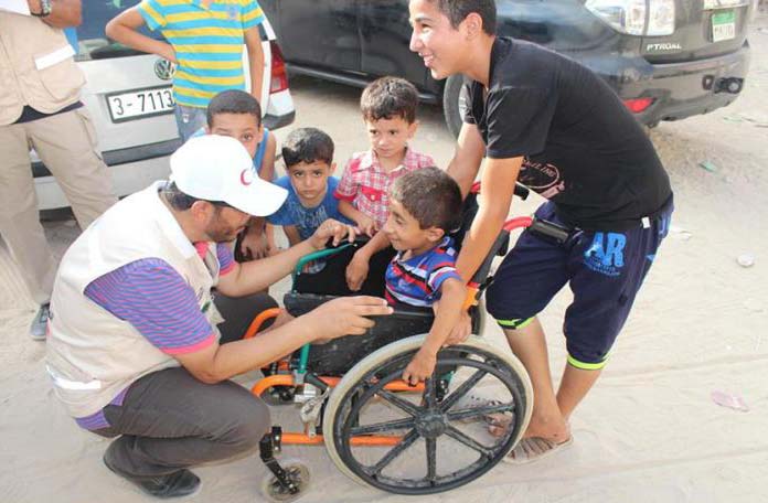 ERC's sixth delegation yesterday distributed a range of wheelchairs to those injured, as the damaged Gaza hospitals are witnessing an acute shortage of medical equipment and supplies, in addition to wheelchairs for people with disabilities.
